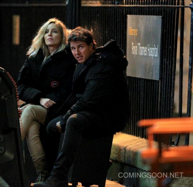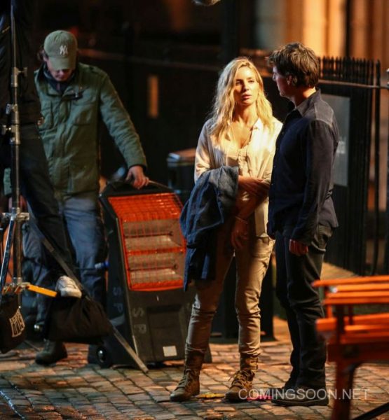 Wearing a long sleeve blue shirt and dark pants, Cruise was joined by co-star Annabelle Wallis. She was sporting a white shirt and gray jeans. The two looked like to have a serious conversation on the street. During a break, the two bundled up in coats to keep themselves warm while sitting next to each other.